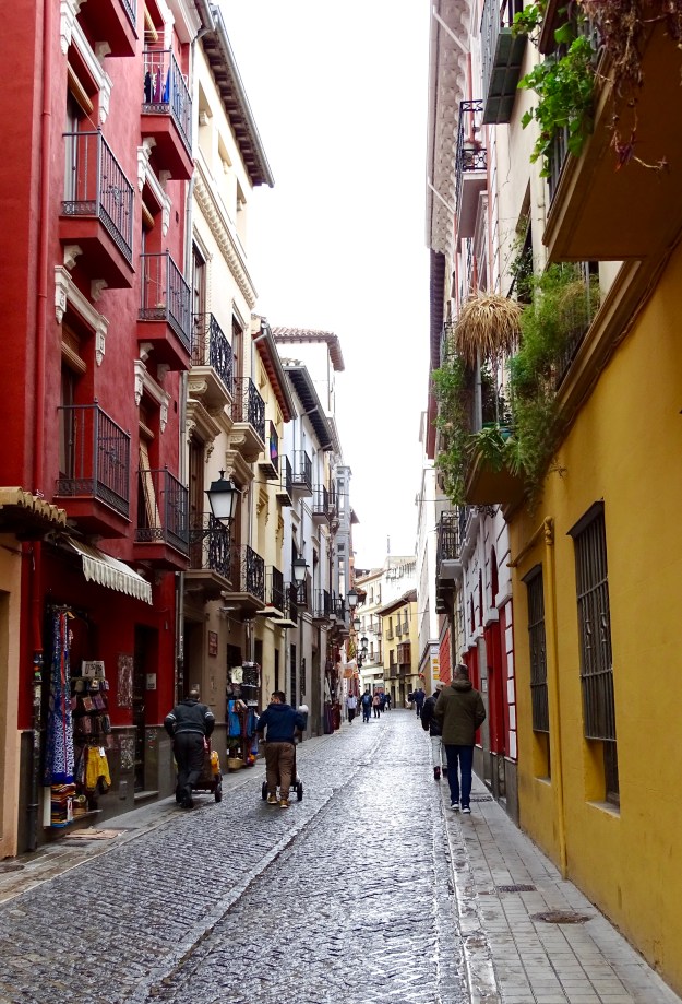 Eikä ollut enää pitkä matka takaisin ihanalle kapealle kotikadullemme. Kapea ja kapea – joukkoliikennekatu se oli silti, bussi C3 tuli takaisin Alhambrasta tätä katua pitkin.