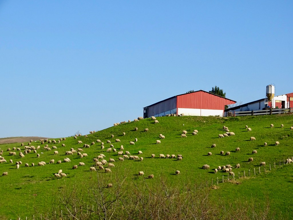 Kylien välillä oli maalaistaloja ja laitumia, joilla oli lammas- ja lehmälaumoja.