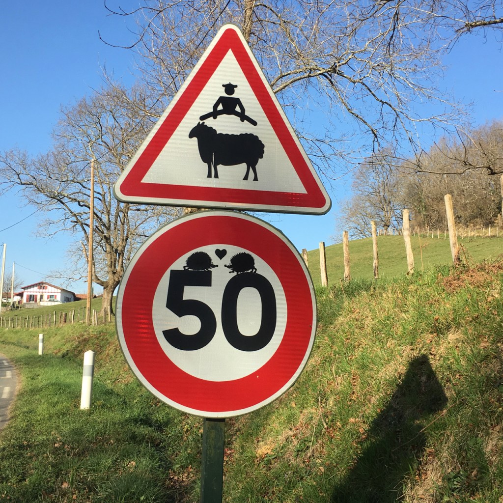 Ennen kuin pääsimme kylien tunnelmaan, ihmettelimme ajaessamme, ovatko Ranskan baskeilla kaikki muumit laaksossa tai terävät kynät penaalissa, kun näimme tällaisia: