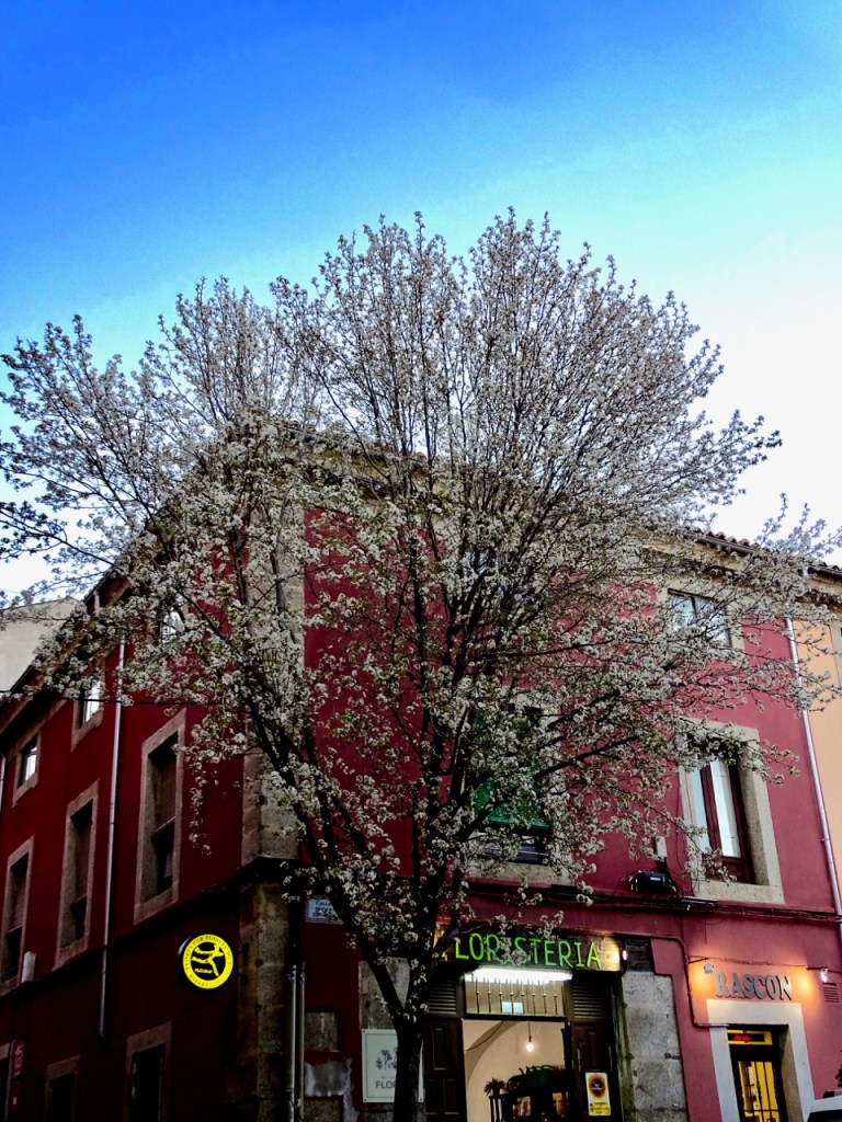 Lähdimme kuitenkin iltakävelylle pieneen sympaattiseen paikkaan todentamaan epäilymme. No, eipä siellä juuri mitään ollut, mitä olisi erityisesti pitänyt nähdä. Pieniä putiikkeja, terasseja ja nätit kukkivat puut luostarin puutarhassa ja katujen kulmissa, mutta eipä kylässä mitään vikaakaan ollut helmikuun lopun iltana.