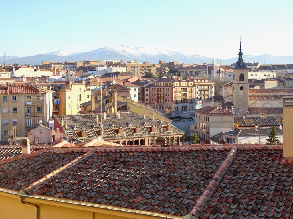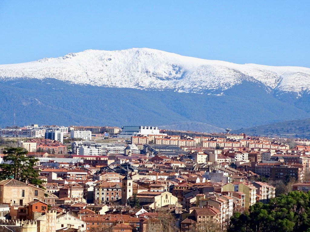 Poikkesimme yhdelle näköalapaikalle, josta näkyi kaupungin yli Sierra de Guadarraman vuoriston lumihuipuille.