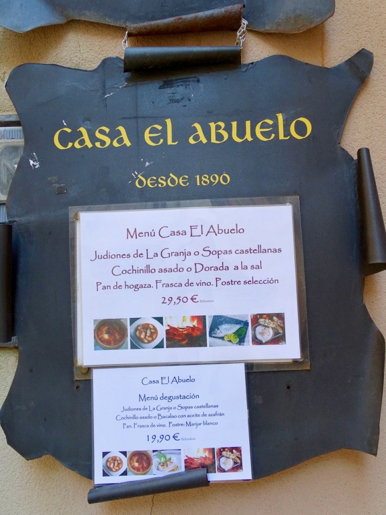 Segovian ravintoloiden turisteille tarjoama annos on kokonaista savustettua possua ”Cochinillo”. Emme olleet liikkeellä päivällisaikaan, joten päätimme nauttia oman possumme kahvilan tarjoamana keksinä.