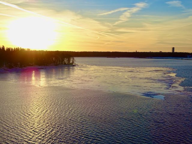 Jos helmikuussa lähtee ajamaan kesärenkailla Vuosaaren satamaa kohti, josta Finnlinesin laivat lähtevät, saa aina jännittää, mikä tien pinnan tilanne on. Tällä kertaa aurinko paistoi, lämpötila oli plussan puolella jo ties monetta päivää ja tien pinta oli kuiva kuin kesällä. Napakymppi! (lisäys 2024: Olemme viime kerroilla vaihtaneet renkaat satamassa Rengasliikkeessä Vuosaaressa. Helmikuussa lähtiessä kesärenkaat alle, sitten taas syksyn matkan jälkeen marraskuussa talvirenkaat. Kätevää!)