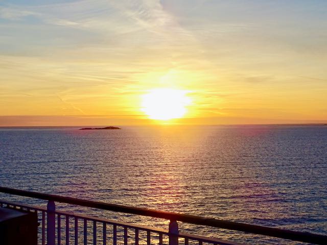 Täydellinen auringonlasku kruunasi täydellisen päivän. Tämän ajan tarkeni rauhallisella kannella oikein hyvin.