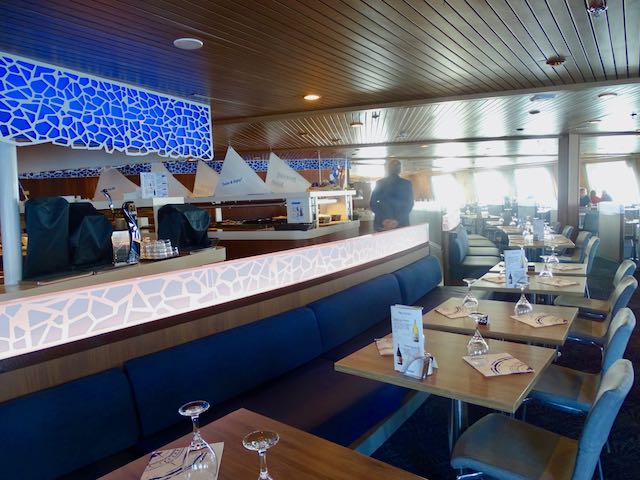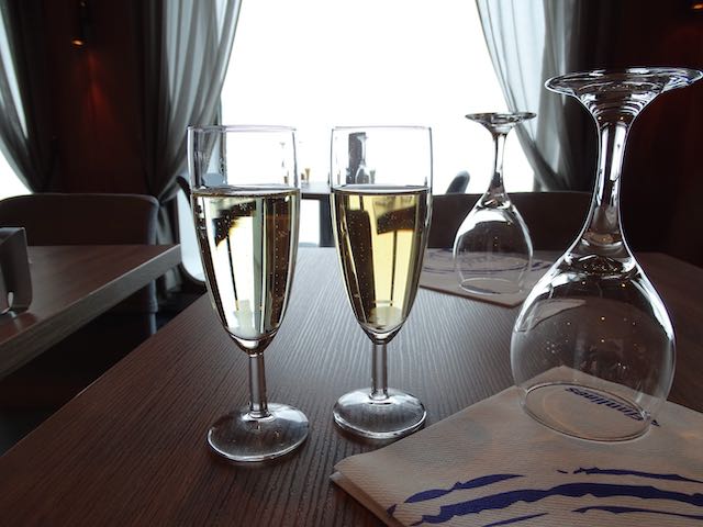 Ateriapaketin maksamalla saisi runsaat ja maukkaat ruoat viineineen, mutta tällä kertaa meillä oli joitain akuutteja ruokarajoiteongelmia, emmekä kokeneet oikein voivamme hyödyntää runsasta ruokailua. Avaamatta asiaa enempää, kerron vain sen, että allergioista tai ruokavaliosta ei ole kysymys, ne on kyllä hyvin huomioitu tarjonnassa. Ostimme kuitenkin brunssin (vuonna 2019 kahdelta 52€). Hinnalla saa käydä sekä aamiaisella että lounaalla (ennen klo 13) ja valikoima on hyvä. Aamu alkoi siis kuohuvalla.