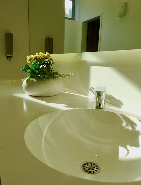 Vessat taas eivät ole yhtään vanhanaikaisia vaan ihanan siistejä ja tunnelmallisia kukkakimppuineen.