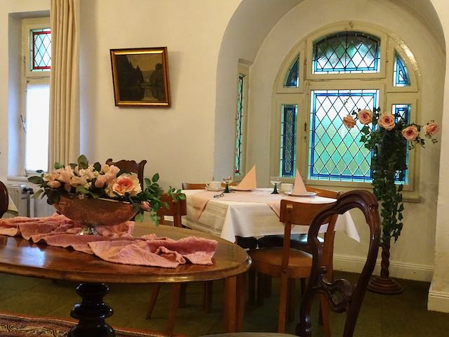 Aamu hotellissa oli kuin romanttista juhlaa. Olimme ainoat asiakkaat kauniisti sisustetussa ruokasalissa.