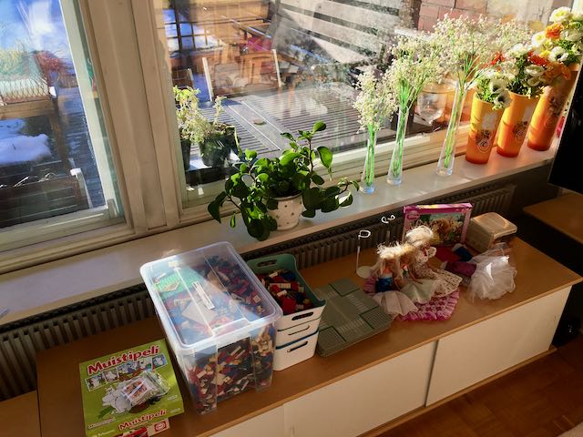 Hetkeä ennen kuin piti alkaa pakata, löysin kolme Barbieta, jotka olivat olleet piilossa. Olin luvannut etsiä niitä uudelle leikkijälle, joka perheensä kanssa oli tulossa kotiimme muutamaksi viikoksi putkiremppaansa pakoon. Sinne ne jäivät tyttöä odottamaan niin kuin iso laatikollinen pikkulegoja isolle veljelle.