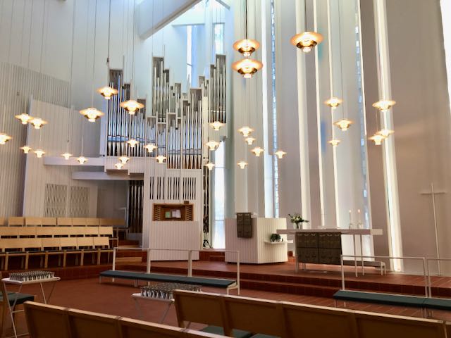 Aikaa oli riittämiin, ei ollut kiirettä mihinkään ja lähdimme jumalanpalvelukseen Hyvän Paimenen kirkkoon. Juha Leiviskän suunnittelema kirkko on muuten yksi kauneimpia kirkkoja Helsingissä. Pappi rukoili seurakunnan esirukouksessa varjelusta matkallemme. Kirkkokahvilla naislauma muistutti Juhaa, että Pakilassakin olisi kirkkokuoro, jossa voisi laulaa, ei tarvitsisi jäädä ikuisesti Aurinkorannikon kuoroon. ”Tuu sitten kuoroon, kun tulette takaisin!” Hyvän matkan toivotukset lähettivät meidät matkaan.