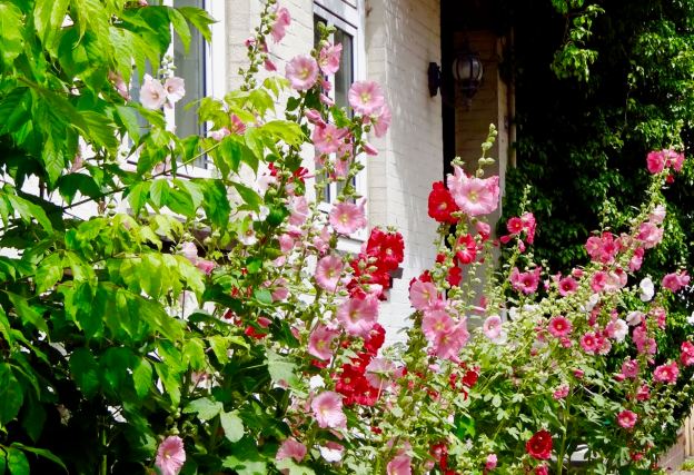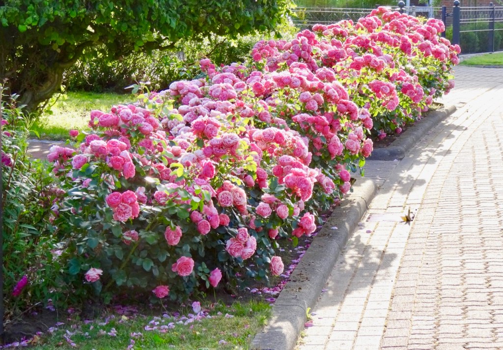 Useankin asukkaan näimme huoltamassa oman porttinsa pielessä kasvavia ruusupensaita ja salkoruusuja.