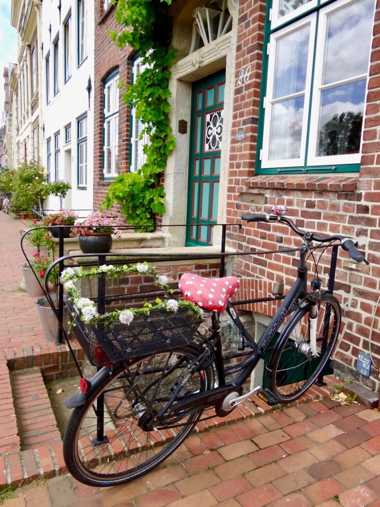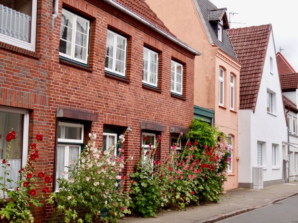 Satamaa vastapäätä oleva talorivi on varsinainen Glückstadtin maisema. Koristeellisia taloja ja kukkia, kukkia, kukkia.