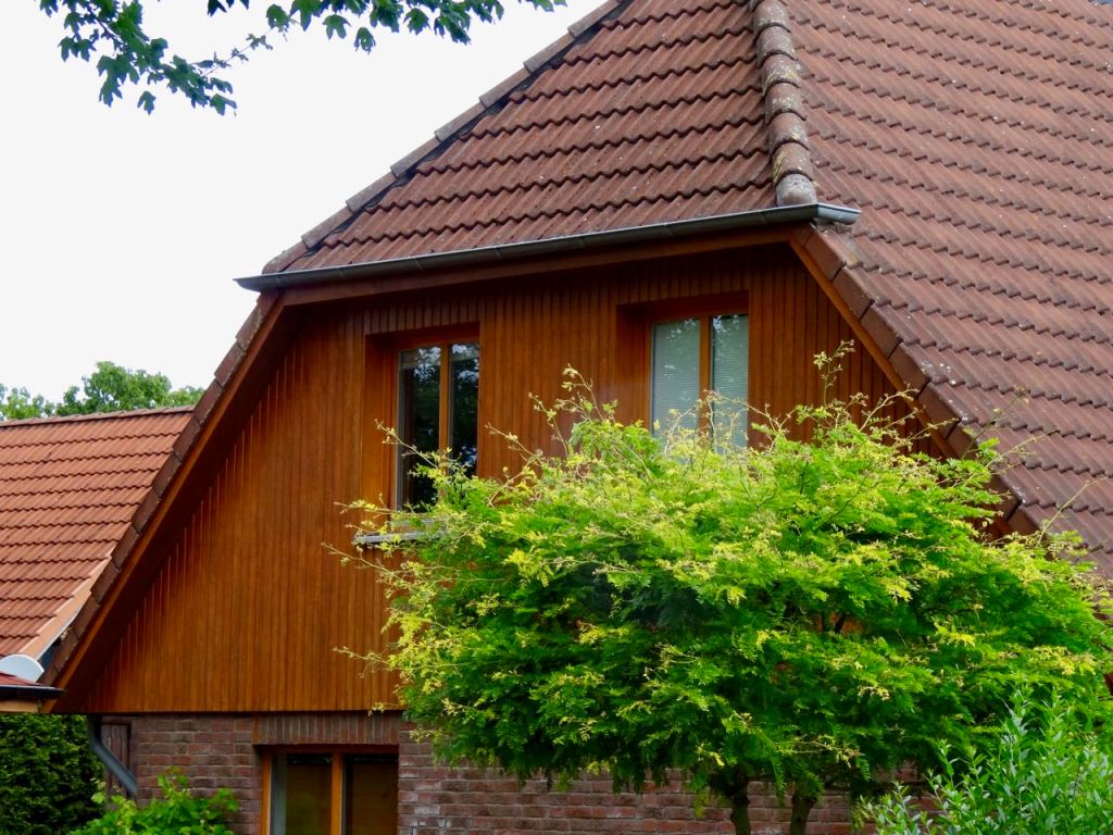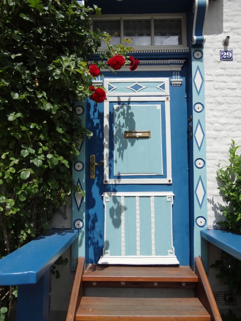 Toiselta rannalta Wischhafenista oli noin puolen tunnin matka Neuhausiin, josta olimme varanneet lupaavalta kuulostavan AirBnb-majoituksen omakotitalon yläkerrasta. Paikka oli hurmaava. Ruusuportti otti meidät vastaan, kauniita portaita pitkin mentiin sisälle ja vastassa oli ystävällinen emäntä, joka siis itse asui talossa.