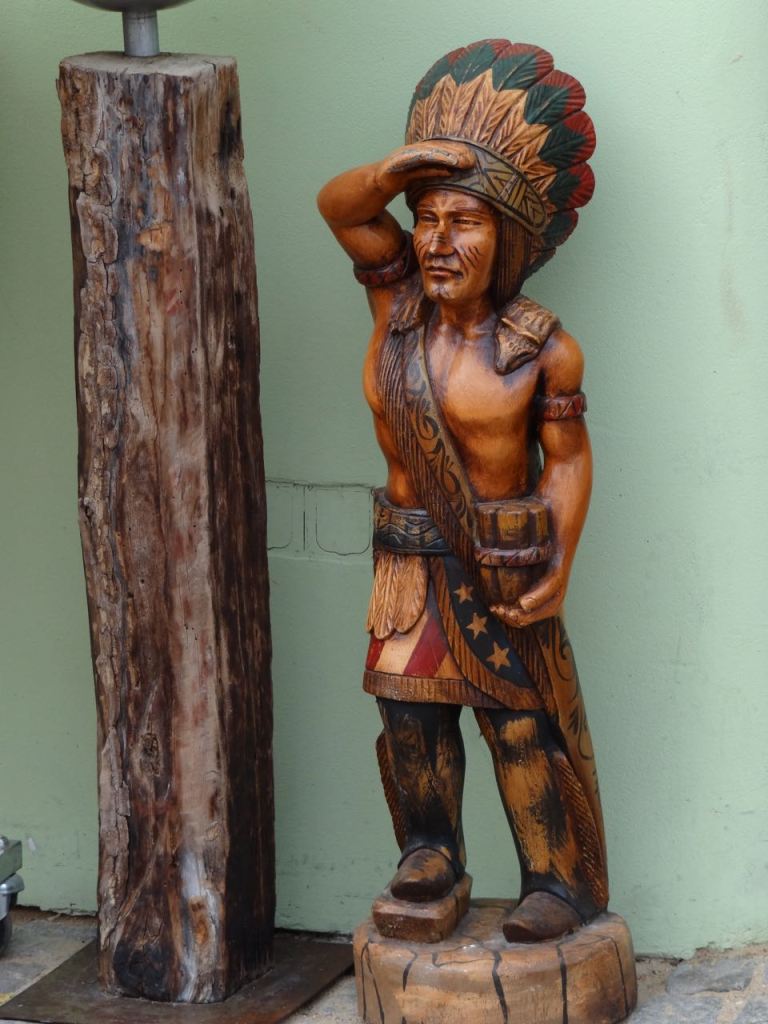 Yllättävän monessa paikassa oli näitä intiaanien kuvia. Emme silloin keksineet, miksi, mutta Saksassa asuva ystävämme Ulla vinkkasi meitä etsimään hakusanalla Winnetou. Eksoottisia seikkailuromaaneja kirjoittanut Karl May (1842– 1912) hyödynsi maanmiehensä, seikkailijaprinssi Maximilianin yhdessä sveitsiläistaiteilija Karl Bodmerin kanssa Yhdysvaltojen alkuperäiskansojen pariin tekemien tutkimusmatkojen tuottamia kirjoituksia ja maalauksia ja loi tämän kuvitteellisen ja suositun hahmon.