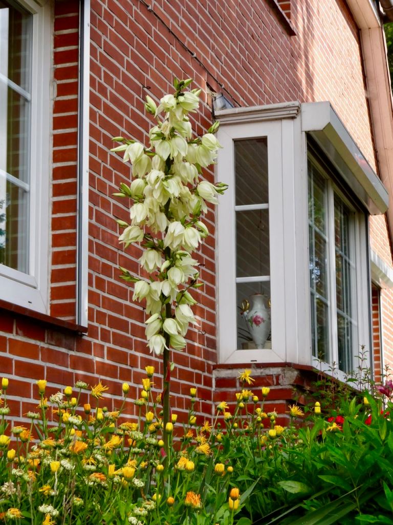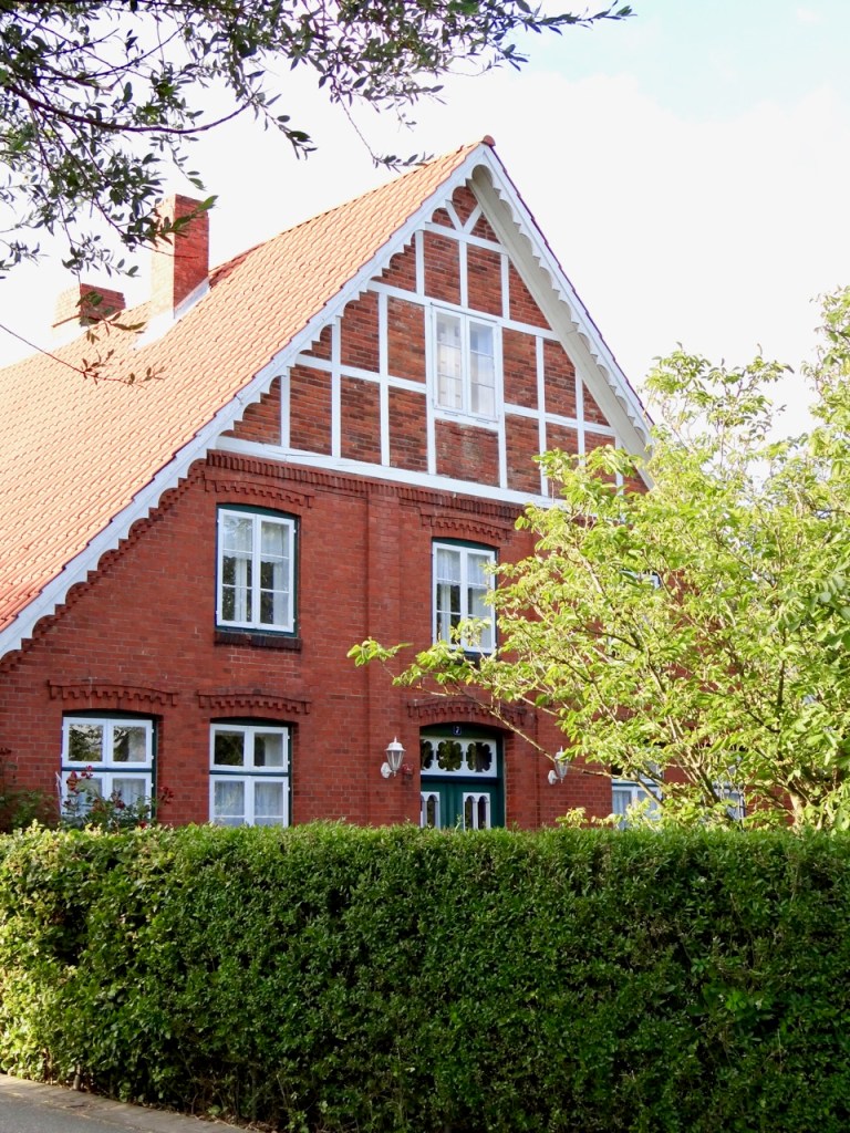 Lähdimme rauhassa ajelemaan pikkuteitä. Kylänraitteja reunustivat pohjoissaksalaiset punatiiliset talot ja kukkivat ja hoidetut pihat aitoineen ja pensaineen. Tein taas pari kertaa sen, mitä aina tekee mieli. Juha parkkeeraa auton tienvarteen, minä kävelen kylän läpi kameran kanssa ja sitten soitan, kun olen valmis taas astumaan autoon ja jatkamaan matkaa.
