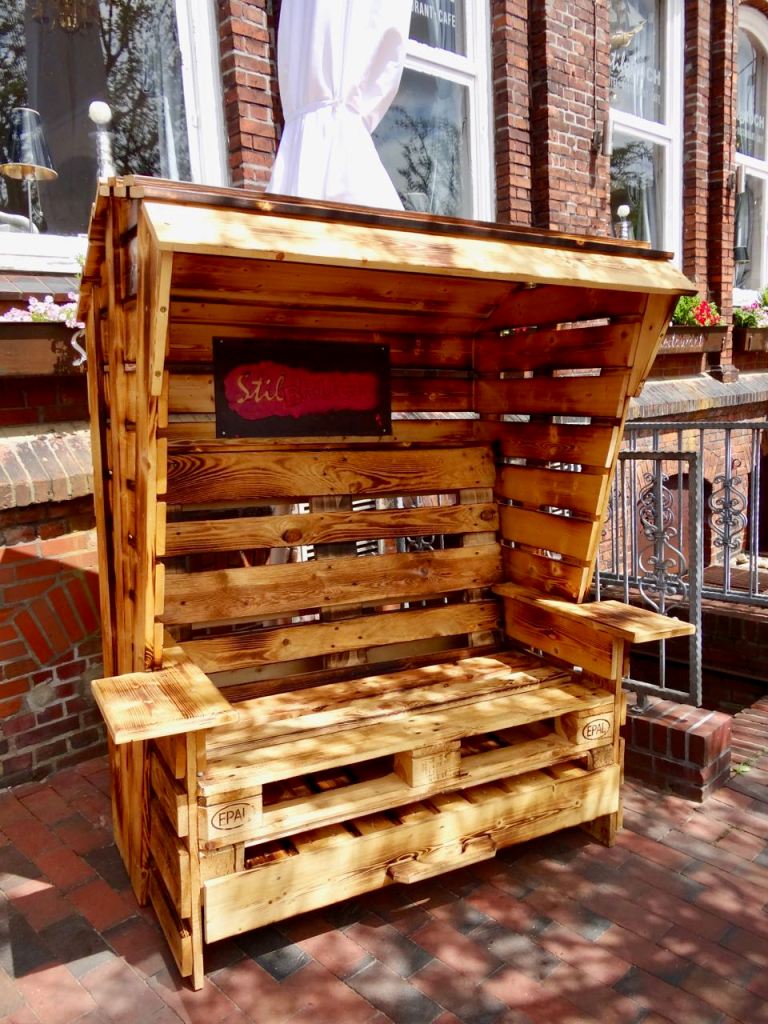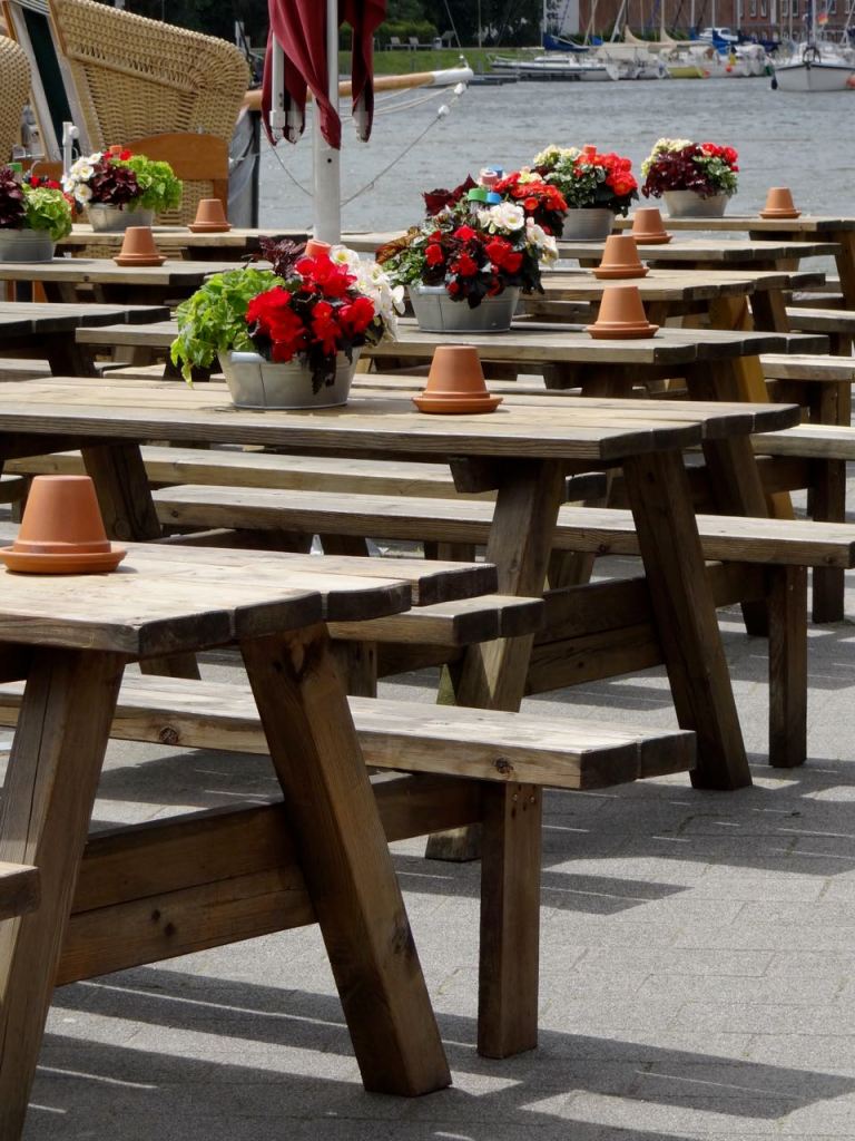 Näitä aurinkotuoleja näkee Saksassa rannoilla. Täällä myös kahvilan terassilla.