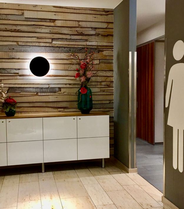 Huone oli siisti ja kauniisti laitettu. Pienessä keittiössä saimme laittaa aamupalamme itse. Emäntä oli kyllä hankkinut tarvikkeita, jopa esipaistetut sämpylät. Aamulla emme siis jääneet vaille pakollisia herkullisia saksalaisia aamiaissämpylöitä. Kylpyhuoneen koristelukin oli ylenpalttinen.