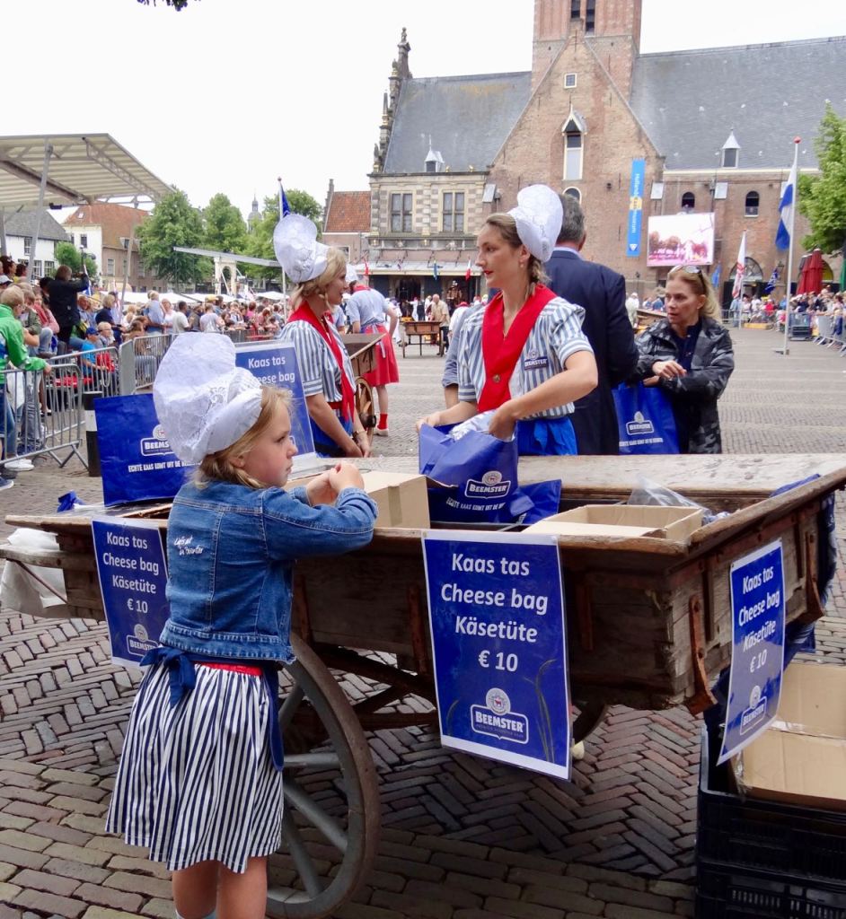 Meillä oli sovittuna kahden viikon kodinvaihto Haagissa ja niinpä sitten seuraavana perjantaiaamuna ajoimme takaisin Alkmaariin. Waagpleinillä oli vauhdikas juustoshow menossa. Nykyisin juustot saadaan tuottajilta kaupan hyllyille modernimmin, mutta vanhaa kaupankäyntiprosessia juustojen kanniskeluineen oli hauska seurata.