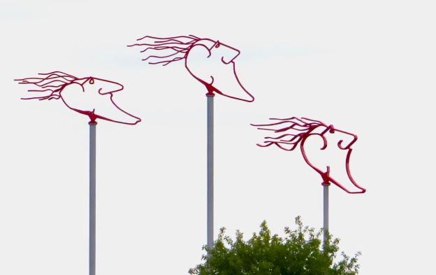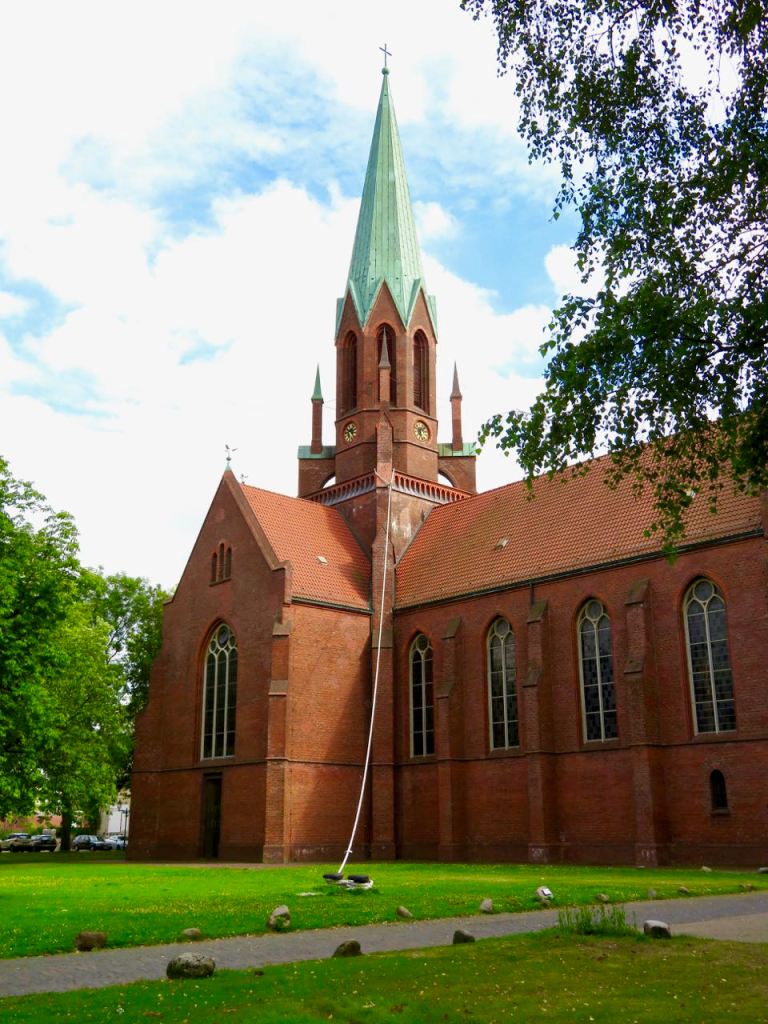 Ja pari hauskaa nähtävyyttä matkan varrelta. Merenkulkukaupungissa kirkon tornikin on kiinnitetty ankkuriköydellä nurmikkoon. Köyteen oli kiinnitetty valkoinen kyltti. Kävin katsomassa sitä, kun ajattelin, että siinä olisi kerrottu, miksi köysi on siinä, mutta se olikin vain vanhemmille muistutus, että lapset eivät saa kiipeillä köydessä.