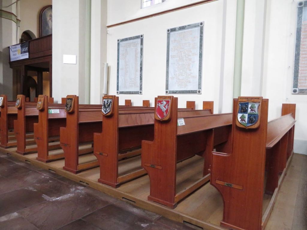 Jokaisen penkin päässä oli jonkun Saksan alueen vaakuna.