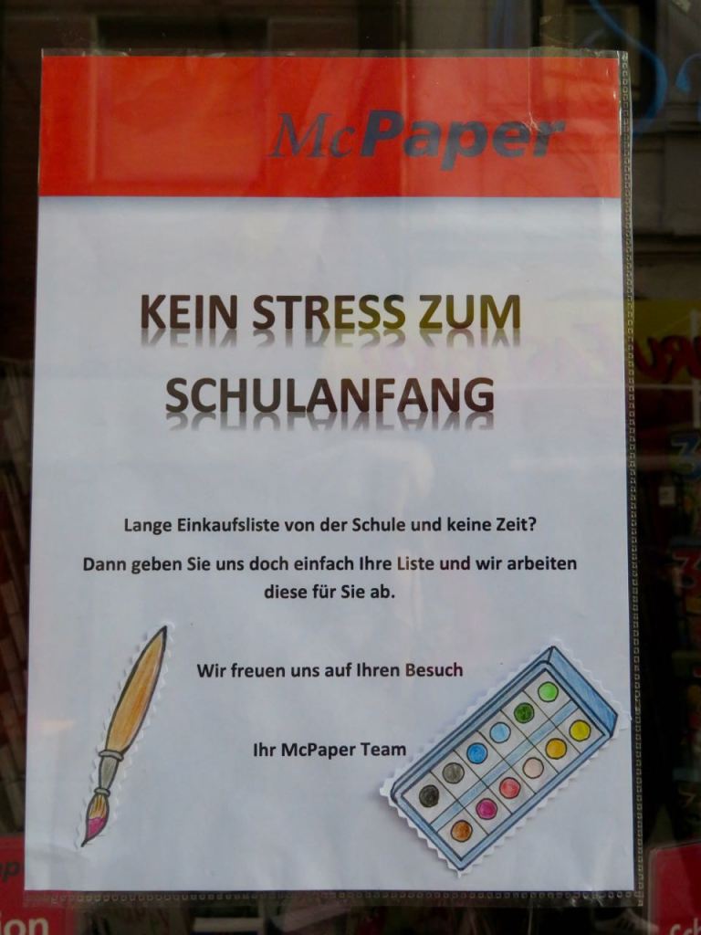 Oli sunnuntai-ilta, ostoskadulla oli hiljaista ja meidän mielissämme koulun alkamiseen liittyvien alennusmyyntien mainokset osuivat aivan nappiin. Ei stressiä koulun alkamisesta! Enää.