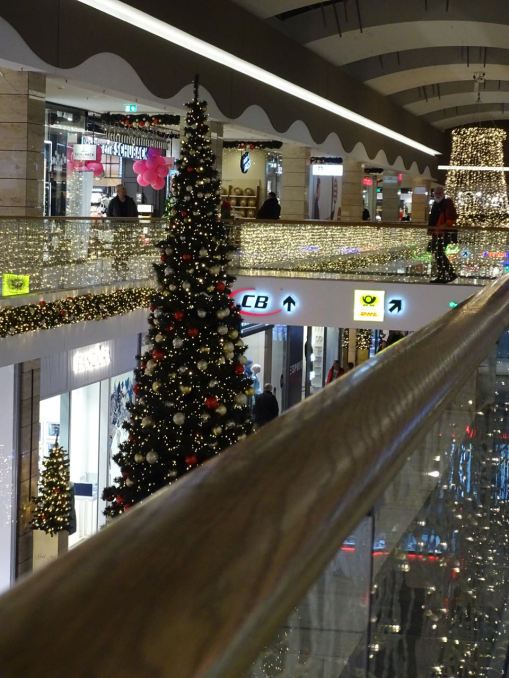 Joulutori olisi tietysti ollut valoineen tunnelmaltaan toisenlainen illalla, mutta aikataulumme ei nyt sallinut viipymistä. Travemünden Skandinavienkajn lautta odotti meitä illalla ja varmuuden vuoksi piti ajaa lähemmäs jo ennen iltaa. Kulutimme vielä pari tuntia Lyypekin Moislingissa Cittiparktin ostoskeskuksessa ihan vain laivarantaan ajamista odotellessa. Jouluvaloja riitti täälläkin.