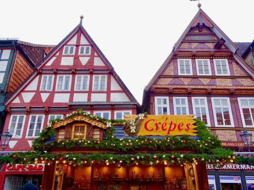 Celle on kaupunkina viehättävä erityisesti ristikkotalojensa takia. Koko kaupunki on niitä täynnä ja ne ovat todella hienoja. Niiden takia valitsimme automatkamme pysähtymispaikaksi Pohjois-Saksassa juuri Cellen ja sen joulutorin. Laskeskelimme, että pienemmässä paikassa ehtisimme paremmin ottaa haltuun tunnelman ja myös löytää autolle parkkipaikan. Onnistui. Ja näimme juuri sitä, mitä halusimme.