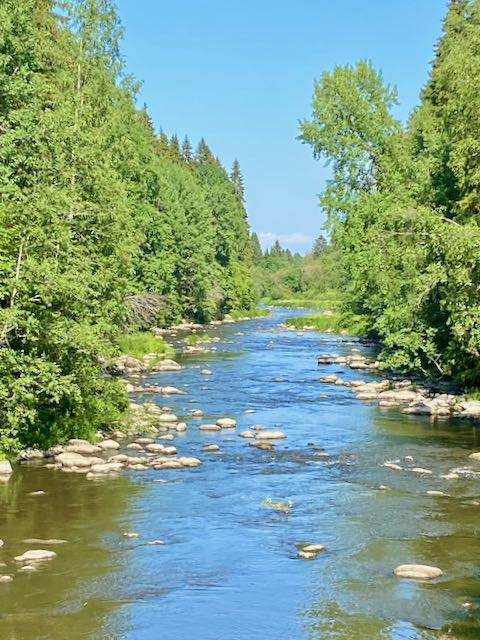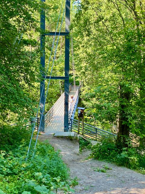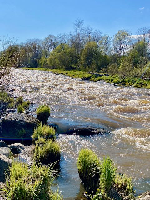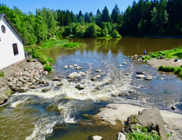 Haltialasta voi kävellä Ruutinkoskelle Vantaanjoen varteen. Sinne ei pääse pyöräillen, joten tänään emme siellä käyneet. Useita kertoja aikaisemmin kyllä. Kuva on keväältä, jolloin puut eivät olleet vielä yhtä vihreitä kuin nyt.