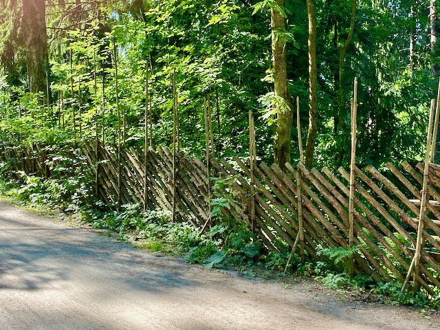 Tällä kertaa ajoimme ohi Kuninkaantietä Pitkäkoskelle, emmekä poikenneet edes Pitkäkosken luonnonsuojelualueelle. Jokirannassa kulkevalle polulle ja portaille pääsee tämän aidan vierestä.