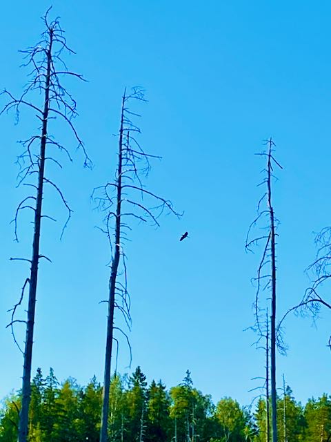 Saavuimme Tuupakantielle ja poikkesimme Ritakujalle. Sen varrella oli pieni erikoinen Tuupakanlampi. Yritin etsiä lammesta jotain tietoa, mutta löysin vain tällaisen lauseen Vantaan vesistöselvityksestä: ”Alueella ei sijaitse ulkoilureittejä. Yleiskaavassa ulkoilureitti on linjattu suhteellisen lähelle lampea. Alueella ei nykyisellään ole juurikaan virkistysarvoa.” Lisäksi lampi oli mainittu hulevesiselvityksessä. Lammesta nousevat kelopuut saivat aprikoimaan, miten lampi oli syntynyt ja miksi sen keskeltä kasvoi näitä kelottuneita puita. Oli lampi nätti, mutta sen ympäri ei mennyt edes polkua. Metsässä oli joitain polkuja, mutta ne ilmeisesti olivat syntyneet sinne piilotettuja geokätköjä etsiessä, ei niinkään lammen takia. Katselimme lammen ympäristössä lentelevää isoa lintua, joka pitkine jalkoineen näytti vähän haikaralta, mutta se pysyi liian kaukana tunnistamista varten.