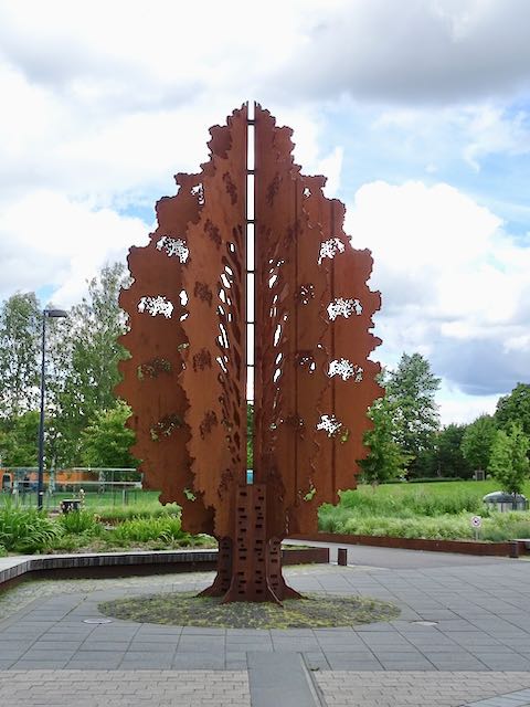 Ajelimme Kyytitietä Hakunilan puolelle ja katselimme Porttipuiston ostosaluetta ihan eri näkökulmasta kuin aikaisemmin, jolloin olemme lähinnä kaartaneet jollekin parkkipaikalle. Usein Ikean. Edetessämme Hakunilantietä osuimme yhdelle päivämme hauskimmista sattumanähtävyyksistä, eli Vaunukallion puistoon. Leikki- ja pelialueitten sekä nurmikenttien ja puitten lisäksi meitä odotti liikuttava sanoma.