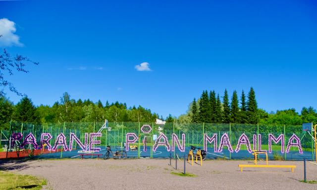Hiekkaharjuun saapuessa näemme hauskoja värikkäitä taloja, ja Sipulipuisto jo nimenä houkuttelee kurkistamaan. Lasten leikkipuistohan se lähinnä on.