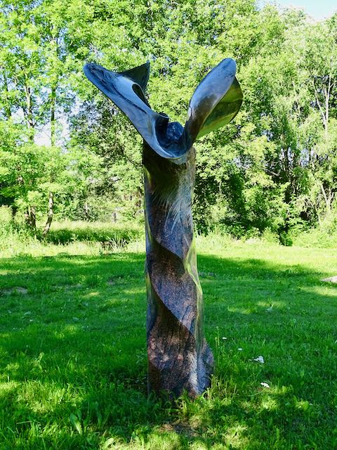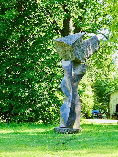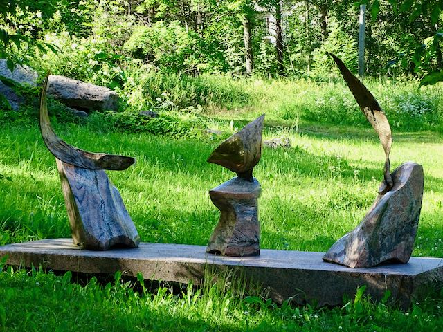 Vähän eteenpäin Hakunilantietä ja sitten käännös Sotungintielle, niin olimmekin jo Nissbackan kartanon tienhaarassa. Kyltti väitti paikan olevan kiinni, mutta jatkoimme silti. Ja näimme sen, mitä ensisijaisesti halusimmekin, ja mikä tänä kesänä oli ainoa mahdollisuus, eli Laila Pullisen veistoksia paikan nurmikkopihalla.