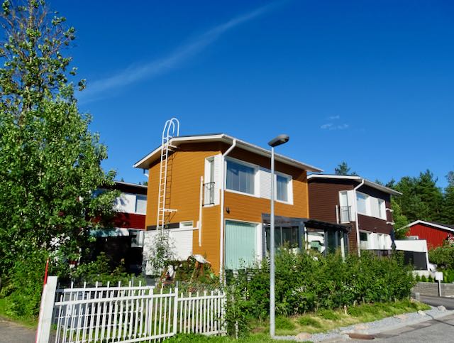 Vaaralan kappeli on mielenkiintoisen näköinen rakennus keskellä värikkäitä puutaloja. Se ei enää ole evankelisluterilaisen kirkon käytössä, mutta ovesta luimme, että siellä edelleen järjestetään helluntailaisten tilaisuuksia.