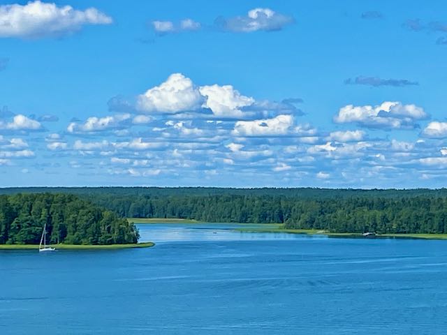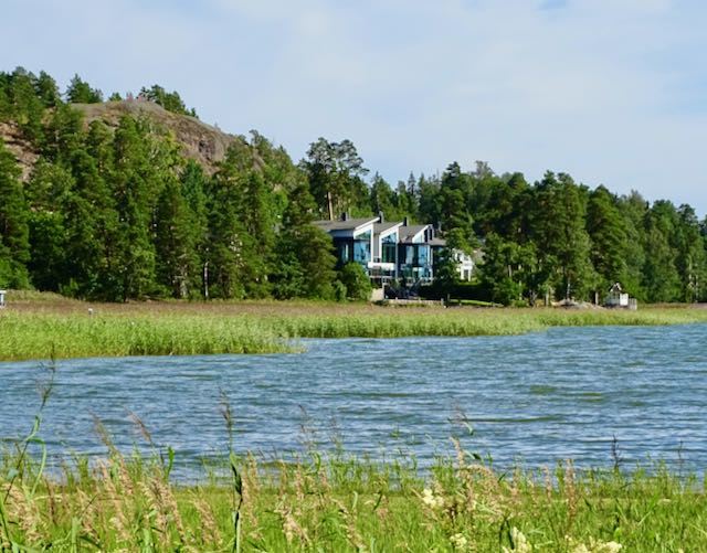 Näitä maisemia ihaillen istuimme kalliolla jopa vähän kauemmin kuin normaalisti. Eikä se ole normaalistikaan vähän, jos joku näkymä kiehtoo. Näkymiä oli avomerelle asti, lähellä oli veneliikennettä, poutapilvet kaunistivat merimaisemaa ja lähiympäristössä oli taloja.