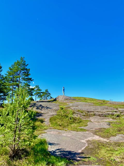 Yllättävän lyhyt aika meni siihen, että edessä aukesi se näkymä, mitä varten tultiin. Espoon korkein paikka, 44 metriä meren pinnasta.