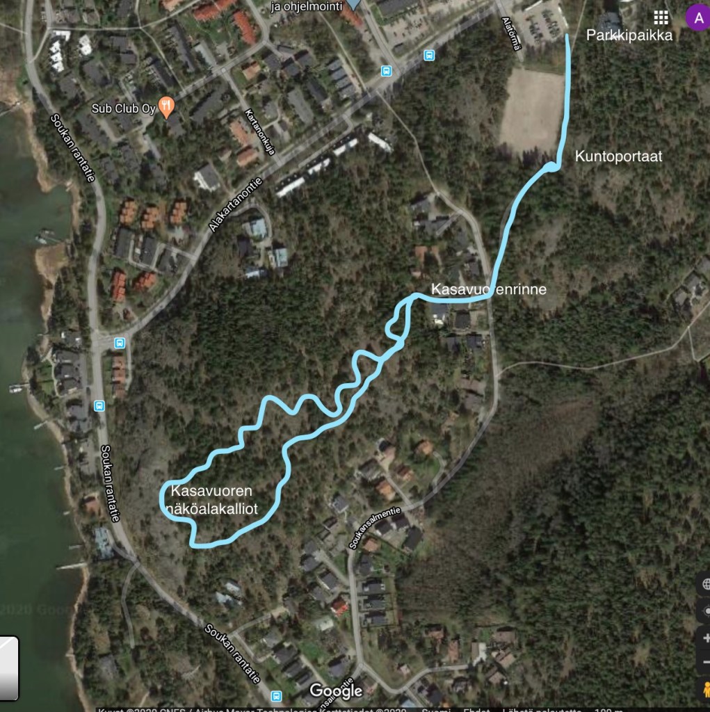 Kasavuori Soukassa on Espoon korkein kohta, josta on hienot näkymät merelle ja ympäristöön. Kalliolle kiipeämiseen ei ole merkittyjä polkuja, mutta sinne on helppo nousta, eikä näin pienellä alueella mihinkään eksy.