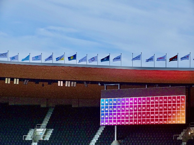 Isot Led-taulut stadionin kummassakin päässä auttavat tapahtumien seuraamisessa. Toista asennettiin paikoilleen vasta siellä käydessämme.
