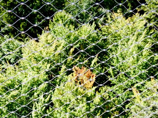 Aita oli hyvin turvallisen tuntuinen teräsverkko, jonka läpi voi ihailla luonnon värejä. Ruska oli nyt aluillaan.