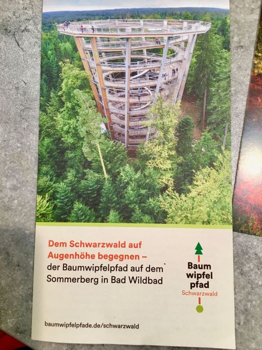 Pienellä googlaamisella löysin jotain. On kysymyksessä konsepti, jossa tuotetaan elämyksiä luonnossa, erityisesti metsissä, ja järjestetään tämä kaikki niin, että elämyksiin pääsee esteettömästi, pyörätuoleilla, kävellen ja lastenvaunuja työntäen. Elämyksiin kuuluu puinen rakennelma korkealla, niin että sieltä voi katsella metsää ja muuta ympäröivää luontoa. Puisen, rakennetun polun varrella on elämyksiä ja levähdyspaikkoja ja mukavaa tekemistä erityisesti perheille. Samalla jaetaan tietoa metsästä, luonnosta ja metsäteollisuuden merkityksestä. Paikoille järjestetään opastettuja teemaretkiä ja tapahtumia, jopa konsertteja tai häitä. Näitä Baumwipfelpfadeja on useita ympäri Saksaa, ja löysin joitain myös Itävallasta ja Slovakiasta.