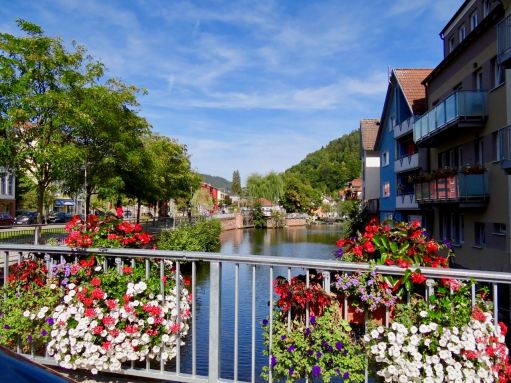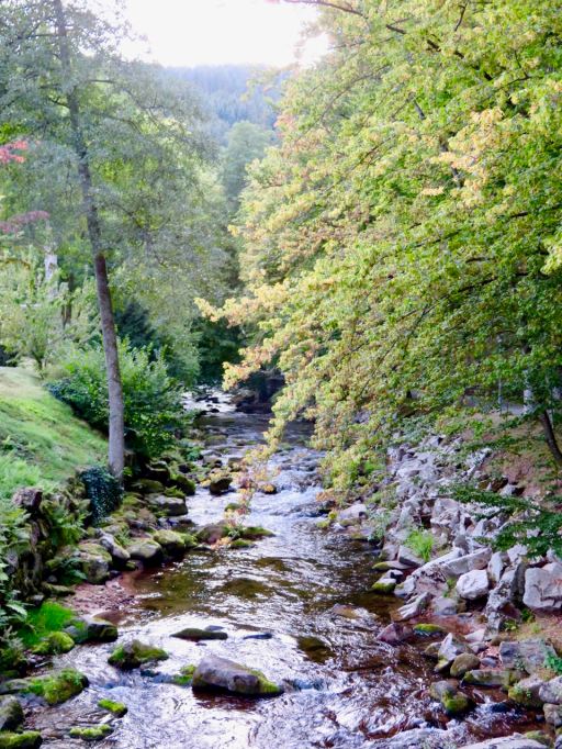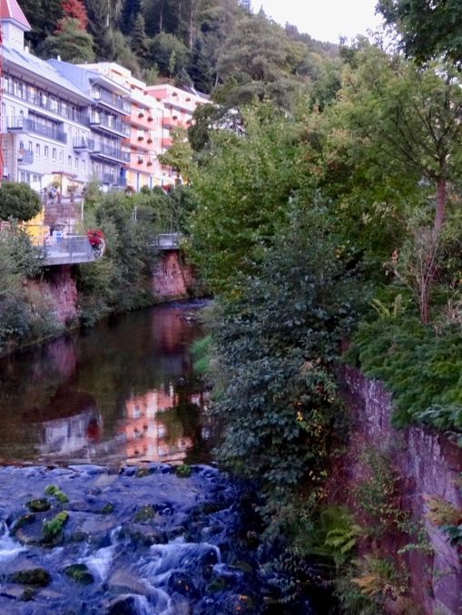 Kapea Grosse Enz joki halkoo Bad Wildbadia. Kävimme aika lähellä sen alkulähdettä eli Enziä, mutta emme ihan siellä asti, kun laskeskelimme, että pitää ehtiä takaisin ennen pimeää. Joki oli kaunis ja solisi tällä kohdalla matalana kivien yli.