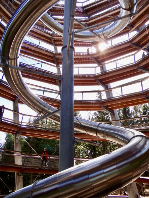 Kaikki muut etenivät rauhassa paitsi pari pikkutyttöä, jotka juoksivat ylös monta kertaa päästäkseen uudelleen ja uudelleen liukumaan alas putkea pitkin. Niiden isä liukui perässä ja huusi putkessa koko ajan tyttärensä nimeä: ”Hilfe, Hilfe!”