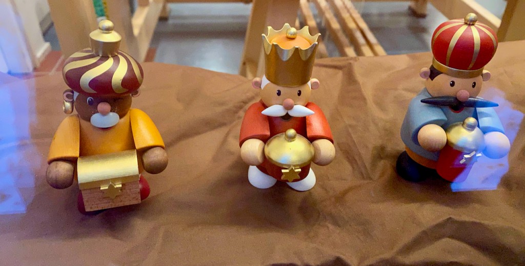 Espanjalaisesta kukkakaupasta joulukoristeiden joukosta ovat löytyneet myös tietäjät, jotka espanjalaiseen tapaan ovat kruunu päässä kameleiden selässä seimelle tulevia kuninkaita.