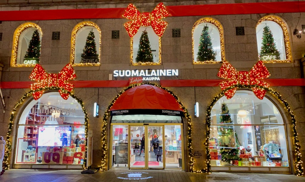 Helsingin keskustassa joulupolkuna puhuttelevat paljon enemmän näyttävät jouluvalot ja jouluisesti koristellut ikkunat.