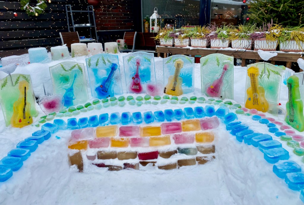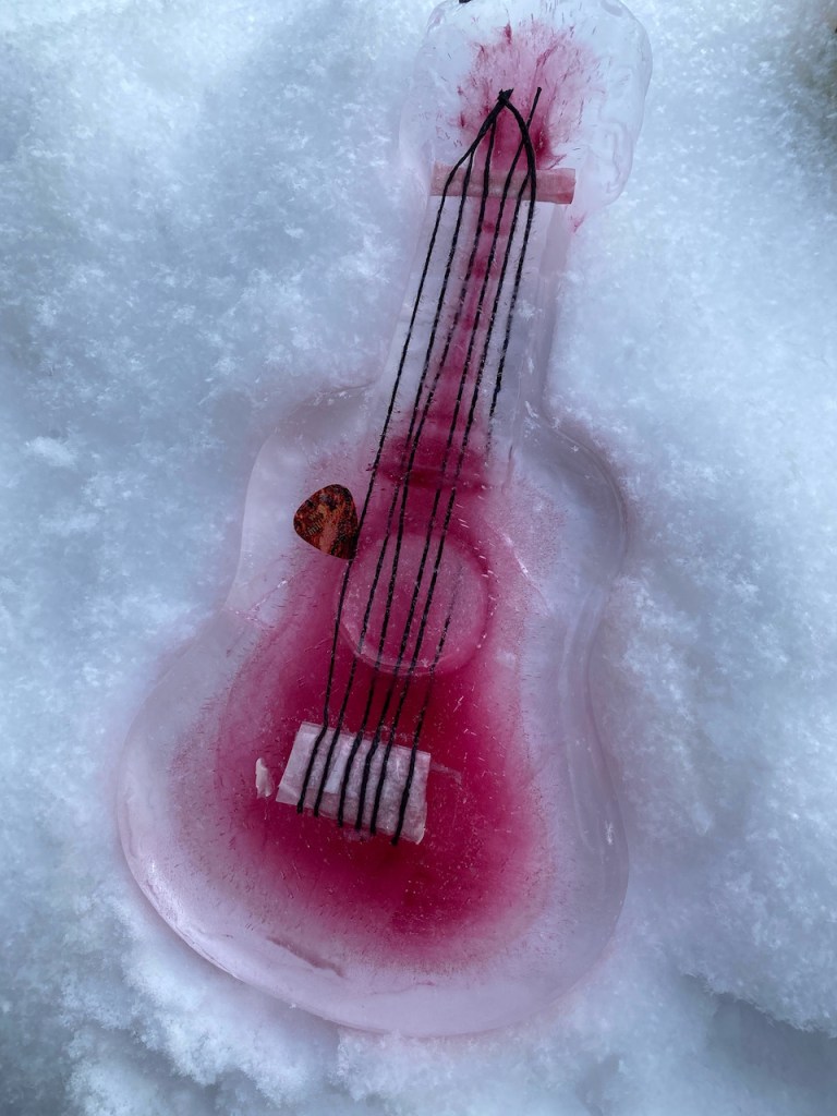 Ei lumen tulo ole jäätaiteessa ongelma, lumi vain pehmentää muotoja, tuo lisälämpöä ja on ihan tiskiharjalla poistettavissa, jos tarvis on. Mutta sitten tuli päivä, jolloin lämpötila nousi plussalle ja sade alkoi tulla vetenä. Yhdessä päivässä tapahtui paljon. Juha suri sitä, että hänen viisitoista kitaraansa olivat muutaman tunnin sateen jälkeen pahasti poissa vireestä.