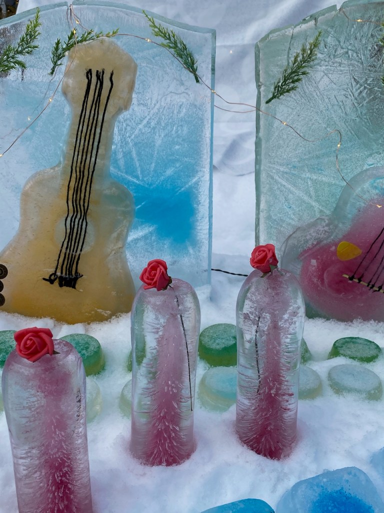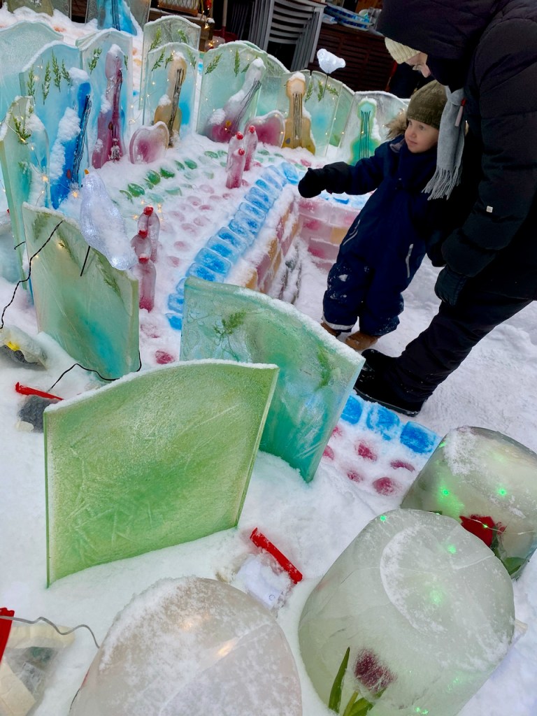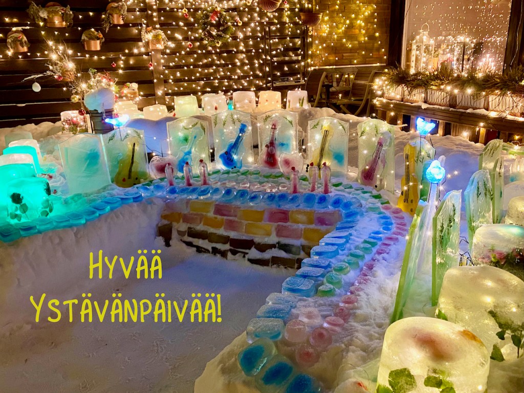 Ihanasti lähti lapasesta tuo teidän taiteilu! Ja aivan järkyttävän hienoja jäälyhtyjä valojen kera. Onnistuin myös näkemään Helsingissä värikkäistä jääpalikoista rakennetun linnan, joka todella piristi maisemakuvaa. Ihanaa taidetta, joka ei edes kuormita ympäristöä!