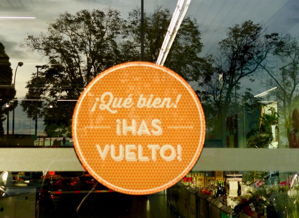 Paramos en una tienda para comprar algo de comida y nos alegramos mucho al ver esta bienvenida en la puerta: