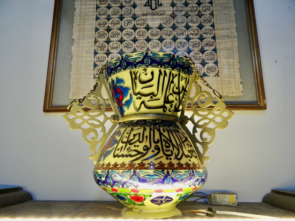 La pasarela está pegada a la antigua muralla. Pasamos por la puerta de entrada y vimos un ambiente típicamente morisco. En sus salas y patios vimos colecciones de monedas antiguas, un modelo de las primeras máquinas de fabricar papel y muchas cosas decoradas.