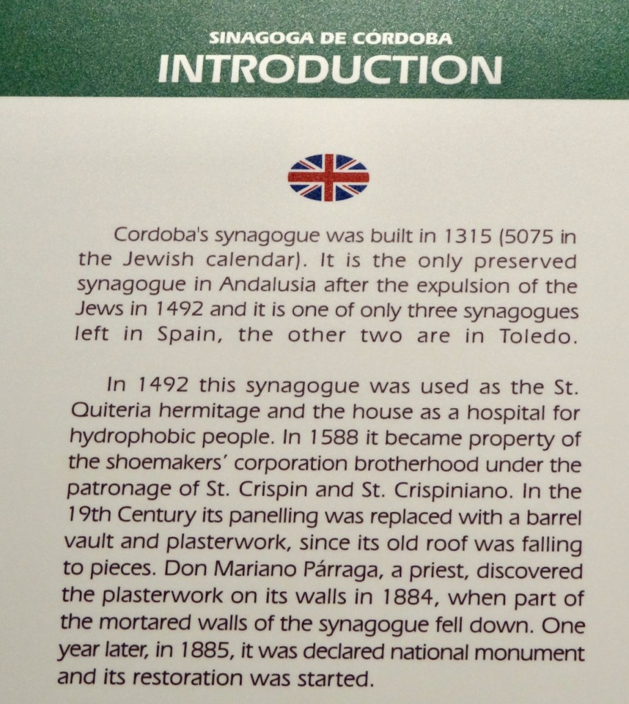 En el barrio de la Judería hay otras casas y museos interesantes, por ejemplo Casa de Sefarad y Casa de las Bulas, pero los dejamos para nuestro próximo viaje a Córdoba. Solo entramos en la Sinagoga.