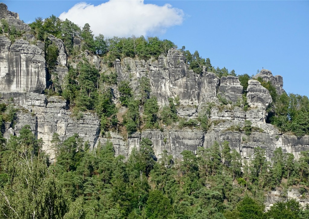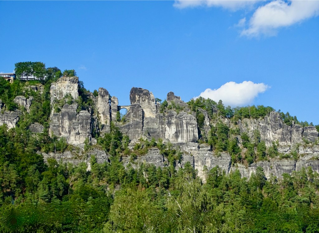 Oli todellakin elämys katsoa alhaalta päin samoja kallioita ja Bastein siltaa, jolla olimme jo käyneet. Kirjoitimme Bastein näköalapaikasta oman tekstin, se on koko Saksin Sveitsin tärkein kohde. Linkki tekstin lopussa.