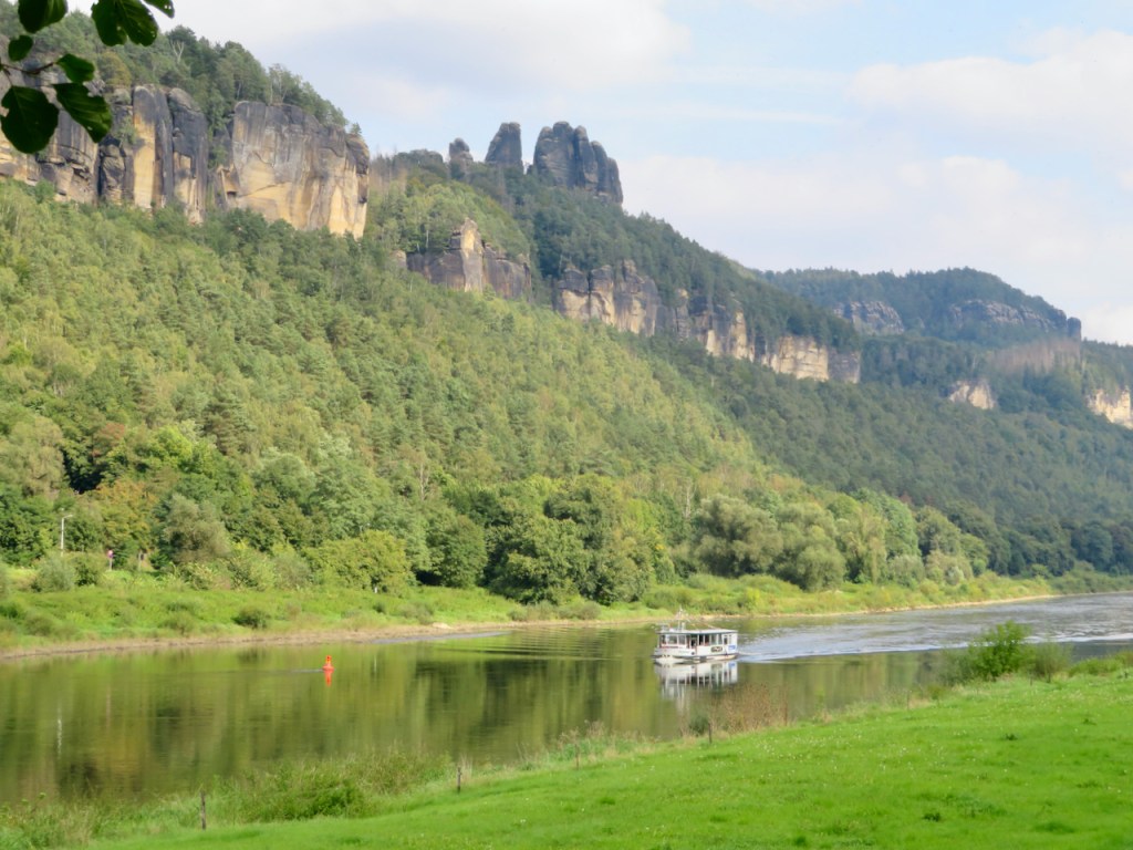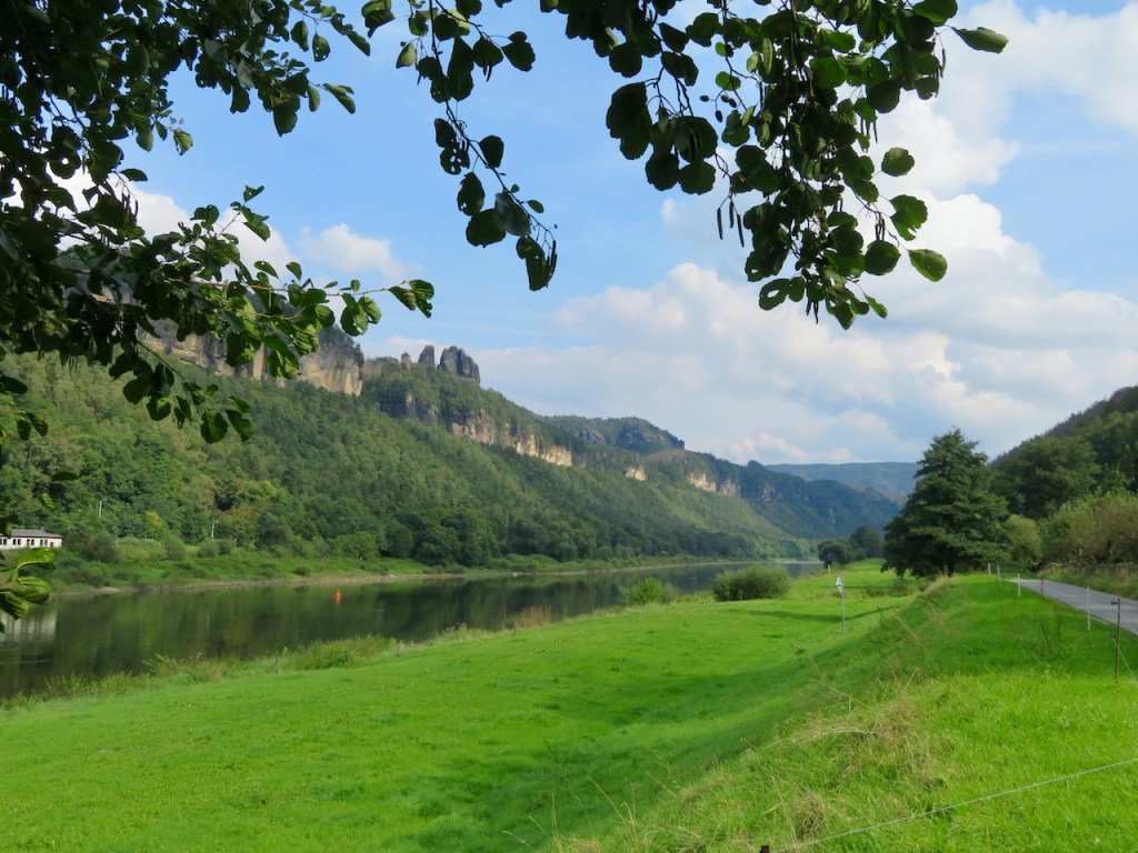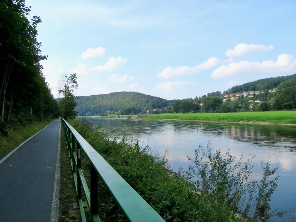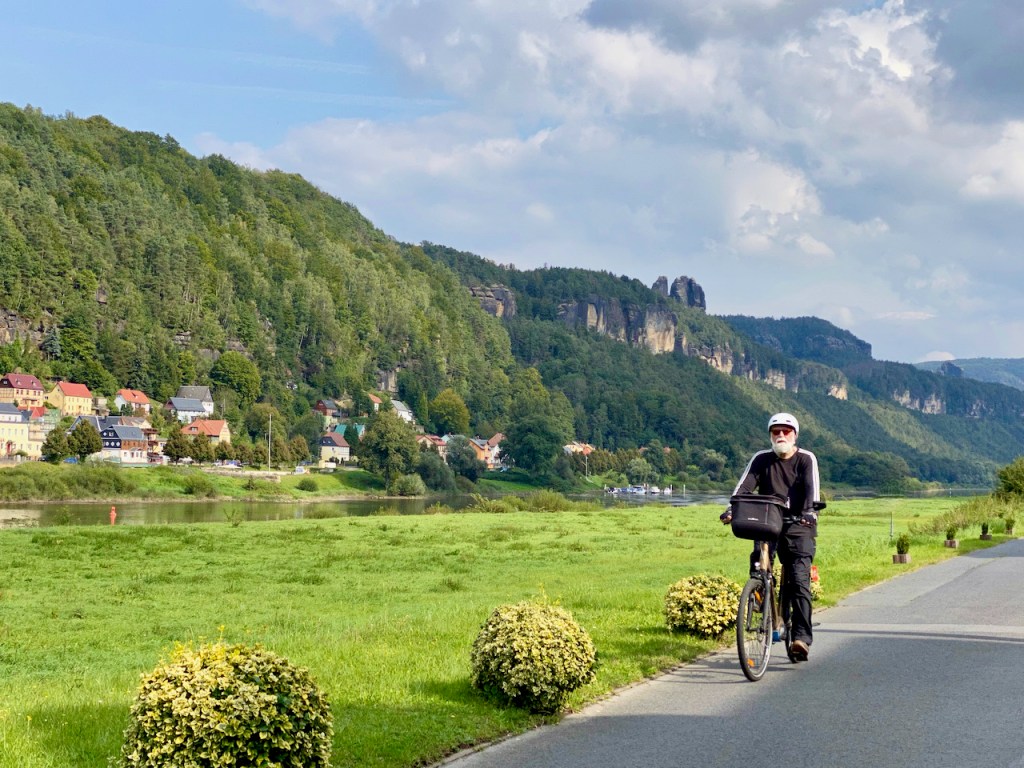 Bastein ja Kuhstallin lisäksi meidän retkeilymme kohokohtia olivat pyöräilyt Elben rannoilla, jossa on hyvät pyörätiet ja mukavat näkymät hiekkakivistä hioutuneille kallioille, joilla olimme jo kiipeilleet. Parkkeerasimme auton rannan kaupunkeihin, ensin Bad Schandauhun ja sitten seuraavana päivänä Pirnaan, nostimme pyörät pois auton perästä ja sitten nautimme vain tasaisesta jokirannan pyörätiestä. Olisi seudulla toki voinut pyöräillä muuallakin, mutta ei oikein ole meidän juttu pyöräillä jyrkkiä mäkiä ja serpentiinejä. Pyöräilkööt nuoremmat.